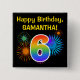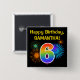 Ces amusement, caractéristiques de conception vibrantes de bouton un motif inspiré par feux d'artifice de célébration de éclatement coloré, avec le nombre "6" comportant un arc-en-ciel multicolore comme le spectre ou le motif de gradient. Il comporte également un nom et un message personnalisés d'événement, tel qu'une salutation d'anniversaire de "joyeux anniversaire". Un bouton comme ceci pourrait être utilisé par les participants à une fête d'anniversaire étant tenue dans la célébration de quelqu'un le sixième anniversaire. [~Z0000334]