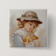 Merveilleuse illustration vintage d'une jeune fille portant un casquette avec des fleurs de marguerite et berçant une armure de canards avec son tablier.