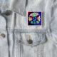 BADGE CARRÉ 5 CM FLEURS ROSES STYLISÉES, FLEURS VERTES BLEUES