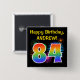 Ce design amusant et dynamique de boutons propose un motif coloré et inspiré par des feux d'artifice festifs, ainsi que le numéro "84" avec un arc-en-ciel multicolore comme le spectre ou le motif dégradé. Il comporte également un nom et un message d'événement personnalisés, comme un message d'anniversaire "Joyeux anniversaire". Un bouton comme celui-ci pourrait être porté par les invités à une fête d’anniversaire qui se tient pour célébrer le quatre-vingt-quatrième anniversaire de quelqu’un. [~Z0000334]
