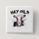 Badge Carré 5 Cm Hay Girl Farmer Funny Cattle Cow Farm Amateurs