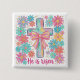 Badge Carré 5 Cm "He is risen" Religious Cross Easter