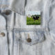 Vache noire et blanche debout dans le pâturage, avec un peu d'humour disant : "Je suis remarquable dans mon champ !"
