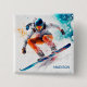 Badge Carré 5 Cm Illustration de snowboarder de nom personnalisé