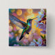 Badge Carré 5 Cm Imaginaire de cerisier en fleurs Hummingbird