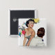 Artiste : Joe DeMers | Femme dans une robe zébrée rayée et épingle de fleurs rouges penchée sur une chaise parlant à un homme en costume blanc