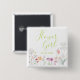 Pour la demoiselle d'honneur de votre mariage, ce joli bouton présente un jardin de fleurs sauvages aquarelle avec "demoiselle d'honneur" dans une typographie verte élégante manuscrite. Personnalisez avec la date de votre mariage.