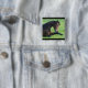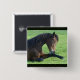 Bouton avec une belle photo représentant un beau cheval de baie brun posé dans l'herbe, à l'air paisible et contenu.