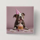 Badge Carré 5 Cm Joyeux anniversaire ! Chien mangeant du gâteau