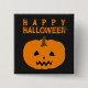Badge Carré 5 Cm Joyeux texte et Citrouille d'Halloween sur le bout