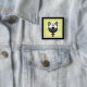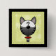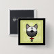 Le visage mignon d'un chat de tabby gris caricaturé est vu avec un collier rouge et un arrière - plan jaune avec une bordure jaune plus foncé. Design original par Christie Black de Creations from the Heart.