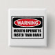 La BOUCHE d'avertissement FONCTIONNE PLUS RAPIDEMENT QUE le bouton de CERVEAU que vous pouvez customiser chez www.WarningSignShirts.com et comporte un rouge et le panneau et la BOUCHE d'avertissement noirs FONCTIONNE PLUS RAPIDEMENT QUE LE CERVEAU dans les lettres noires audacieuses pour avertir le monde. Vous pouvez également customiser votre propre bouton de panneau d'avertissement avec le texte que vous voulez.