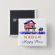 Un bouton avec une maison de plage sur pilotis style aquarelle, avec la citation, "La plage est mon endroit heureux." Ai art. génomique