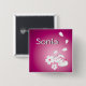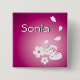 Bouton carré avec l'illustration de deux lapins à neige japonais, deux fleurs de sakura et quatre pétales de fleurs de sakura contre un arrière - plan violet dans le coin inférieur droit, avec une option pour customiser votre nom en haut à gauche.