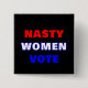 Bouton politique avec l'art texte "méchant femmes vote" en rouge blanc et bleu.