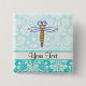 Badge Carré 5 Cm Libellule turquoise de motif de damassé