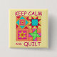 Montrez votre amour de la courtepointe avec ce badge amusant et coloré ou épingle avec un motif de courtepointe de quatre blocs proclamant "Conserver le calme et la courtepointe" sur un arrière - plan jaune. Ce design est original de l'art de la courtepointe avec des blocs de courtepointe patchwork préférés et des blocs uniques. Le mot "courtepointe" est facile à changer pour un autre mot de votre choix. Le design des courtepointes est dans des couleurs vives et dynamiques d'orange, jaune, rose, turquoise et vert citron pour une belle palette de couleurs. Entièrement personnalisable pour personnaliser. L'art de la courtepointe est l'art original de Phyllis Dobbs, concepteur de tissus et de courtepointes. Cet art est disponible sur d'autres produits et dans plusieurs arrière - plans de couleur et est également disponible sur plus Garder Calm produits avec différentes surfaces composées. Plus de produits sont disponibles dans Phyllis' BusinessWithFlair store.