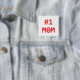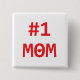 Goupille de bouton de carré de la maman #1. Le bouton personnalisable mignon indique la maman #1 avec un coeur dans les lettres rouges.