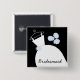 Joli badge à thème de mariée avec une robe mariage stylisée et des fleurs dans les tons bleu, noir et blanc. Un design personnalisable pour personnaliser avec votre propre texte, photos et idées.