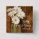 Créez une faveur de fête unique ou un petit cadeau lorsque vous personnalisez le charmant Mason Jar et White Daisies Country Barn Mariage Button avec les noms personnels de la mariée et du marié et leur date de cérémonie de mariage. Ce bouton rustique chic à thème ranch personnalisé mariage bouton dispose d'une photo originale numériquement fleurie rehaussée d'un bocal en verre rempli de fleurs de marguerite blanche et d'un arrière - plan patiné en bois de grange.