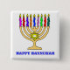 Un menorah lumineux de Hannukah avec les mots Hannukah heureux fait bon accueil aux vacances. Consommation heureuse de latke !