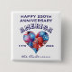 "Happy 250th Anniversary America, 1776-2026", heart shape red white and blue balloons motif and handwritten name are featured on this patriotic 2" square button pin. Change name to make it yours using the Template provided. To edit text, change fonts style-color-size and more-- use the Design Tool. Covered with scratch and UV-resistant Mylar. The printing is excellent. See "About" for more information.