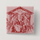 Ornement simple et élégant de Noël de scène de nativité, comportant un arrière - plan tacheté rouge pâle avec un timbre rouge foncé riche de Mary, Joseph et bébé Jésus à l'intérieur d'une petite mangeoire avec l'étoile lumineuse au-dessus de eux.