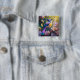 Badge Carré 5 Cm Oiseau à poitrine jaune violet