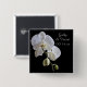 La jolie Orchidée blanche sur le Mariage noir Bouton fait un cadeau unique de conservation pour la mariée et le marié ou la faveur de la fête pour leurs invités. Ce bouton de mariage botanique personnalisé classe présente une photo florale d'une floraison d'orchidées phalaenopsis blanche sur la tige avec un arrière - plan noir.