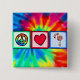 Badge Carré 5 Cm Paix, amour, Flamants roses roses