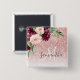 Badge Carré 5 Cm Parties scintillant rose moderne et flamme à fleur