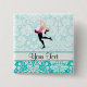 Badge Carré 5 Cm Patinage de glace turquoise de motif de damassé
