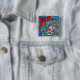 BADGE CARRÉ 5 CM PÈRE NOËL ET NOËL COURONNE DE NUIT AVEC RIBBON ROU