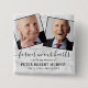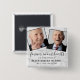 Bouton funéraire commémoratif avec un élégant arrière - plan motif en marbre, 2 photos de la personne qui est tristement décédée, la sympathie disant "pour toujours dans nos coeurs", leur nom, et les dates de naissance/mort.