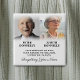 Bouton commémoratif de la vie avec 2 photos des personnes dont on se souvient, leurs noms, et une citation sympathique.