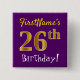 Badge Carré 5 Cm Purple, Faux Gold 26ème Anniversaire, Avec Nom Per