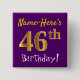 Badge Carré 5 Cm Purple, Faux Gold 46ème Anniversaire, Avec Nom Per