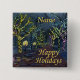 Joli bouton de vacances. Parfait comme un nom de vacances. La peinture à l'aquarelle est d'une nuit brumeuse et humide dans une rue décorée de la ville. Les arbres sont entrecoupés de jolies lumières. Le texte dit "Joyeuses fêtes", et il y a un champ de nom personnalisable. Le design présente mon aquarelle d'origine intitulée "Christmas Street", © Sandy Long. Vous voulez ceci ou une conception similaire sur un autre article? Parcourez ma Boutique Kayatiyu. Kayatiyu signifie avoir une belle forme.