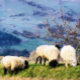 Une belle peinture digitale à l'huile de mouton, quelques unes des fermières qui travaillent dur. Pays de Galles Royaume-Uni.