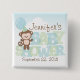 Badge Carré 5 Cm Singe mignon ; Baby shower bleu et vert