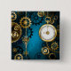 Badge Carré 5 Cm Steampunk Arrière - plan turquoise avec Gears