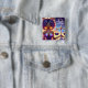 Bouton Horoscope Libra. L'art de Ai représente une belle afro-américaine avec des poignées de redirection violettes colorées tenant une balance avec un symbole Libra au-dessus.