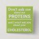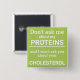 Ce bouton amusant minimaliste, avec la mention "Ne me questionnez pas sur mes protéines et je ne vous demanderai pas votre cholestérol" en lettres blanches sur un arrière - plan vert clair, est le cadeau parfait pour chaque végétalien. Pour les demandes personnalisées, n'hésitez pas à me contacter à zolicestore@hotmail.com (veuillez prévoir 1-2 jours ouvrables)