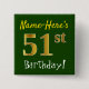 Badge Carré 5 Cm Vert, Faux Gold 51ème Anniversaire, Avec Nom Perso