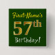 Badge Carré 5 Cm Vert, Faux Gold 57e anniversaire, avec nom personn