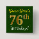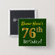 Badge Carré 5 Cm Vert, Faux Gold 76e anniversaire, avec nom personn