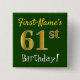 Badge Carré 5 Cm Vert, Faux Or 61ème Anniversaire, Avec Nom Personn