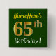 Badge Carré 5 Cm Vert, Faux Or 65e Anniversaire, Avec Nom Personnal