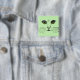 Ce bouton arrière est vert clair avec le visage d'un chat dessiné en noir. Le chat a de longs murmures et des yeux vert vif.