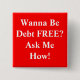 Badge Carré 5 Cm Voulez être dette LIBRE ? Demandez-moi comment !